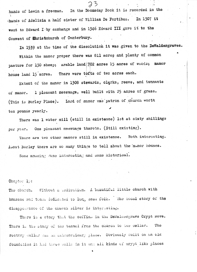 There is a story that the coffins in the DeWaldergrave Crypt move. There is the story of the tunnel from the church to the cellar. The rectory cellar was an extraoridnary place. Obvioulsy built on an old foundation it had three wells in it and all kinds of crypt like places