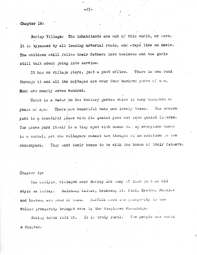 Borley never felt it. It is truly rural. The people are worth a chapter.