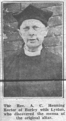underneath. He expressed the opinion that the stone was an altar top. It was relaid and the rector