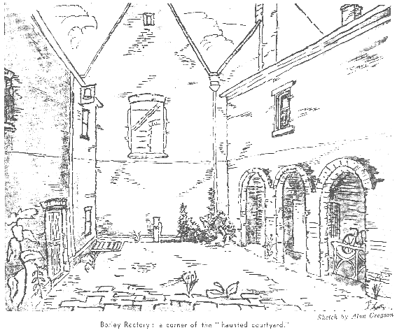 The Ghosts who haunt the place carry one's thoughts back forcibly to the Middle Ages. A Novice, of the Nunnery of Bures, and a young Monk of Borley Priory fell in love. One can visualise their untold schemings for secret meetings (rare and sweet moments). . . . the brooding suspicion aroused, the traps laid, and finally, the surprise and capture of the lovers as they were escaping together in a coach.