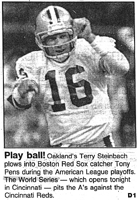 Sometimes, the right photo and the right text just can't seem to find each other in the newspaper, such as this picture of Joe Montana identified as a couple of baseball players.