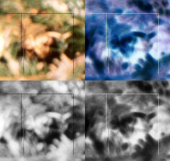 I attach a four-part picture - created from your photo - showing a close-up of the area concerned, which I hope will be of some interest to you. The top left section shows the original picture. Top right shows it in colour negative. At bottom left it appears in black and white and, at bottom right, it is shown as a black & white negative. In particular, take a look at the negative images and the black area on side of the "head". Note how this black area is similar to other black areas in the picture. Broadly speaking, they are leaf-shaped. In other words, what we see as the side of the "head" is actually a leaf, not the side of a head at all. Again, this must suggest that the monk's "head" is an optical illusion created by the leaves.